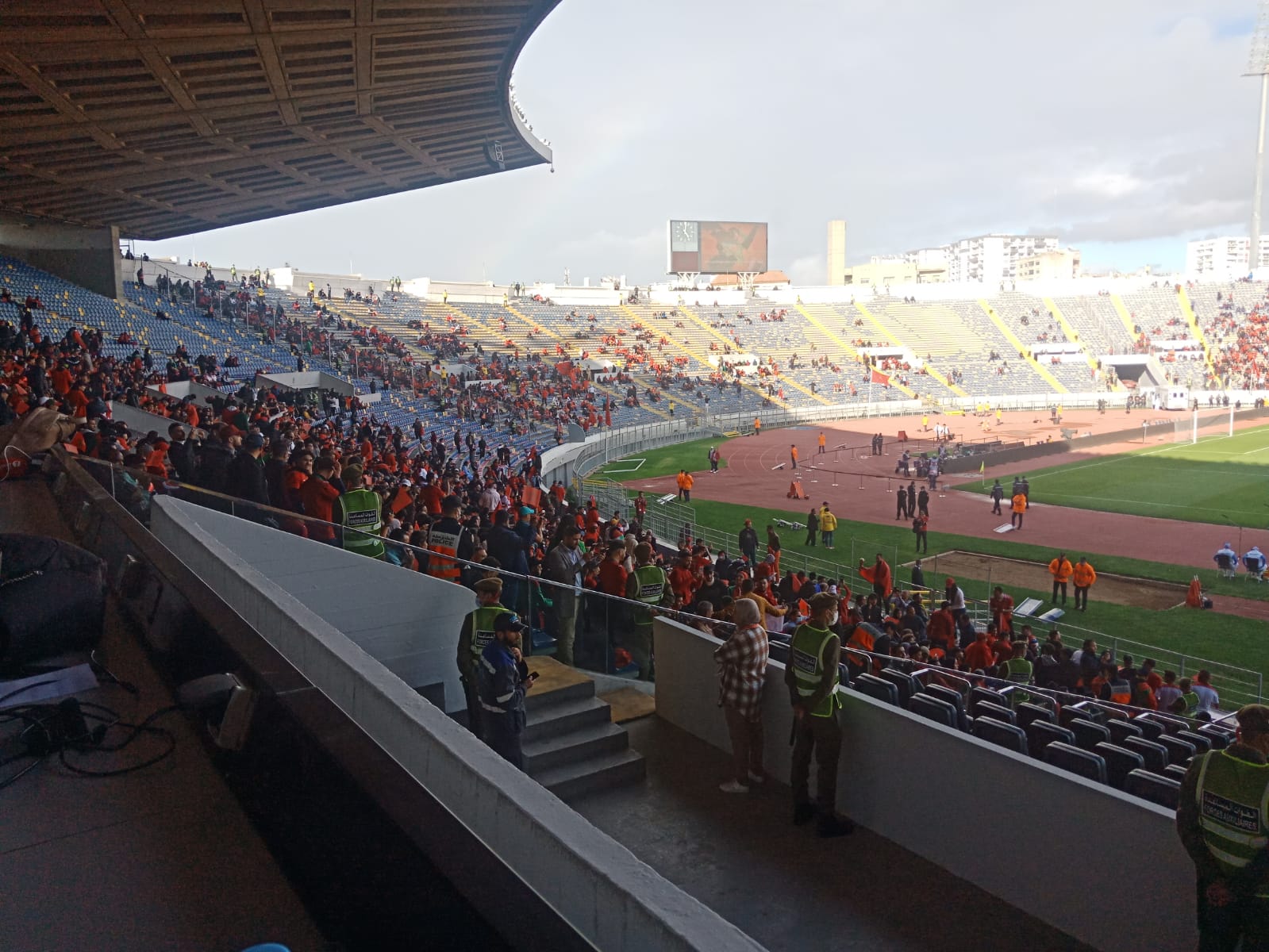 في هذه الأثناء الجماهير المغربية وهي حاملة الأعلام الوطنية تحضر بقوة للمركب الرياضي محمد الخامس بالدارالبيضاء، في إحتفالية إستثنائية كل الأمل أن يحقق فيها الفريق الوطني التأهل للمونديال.