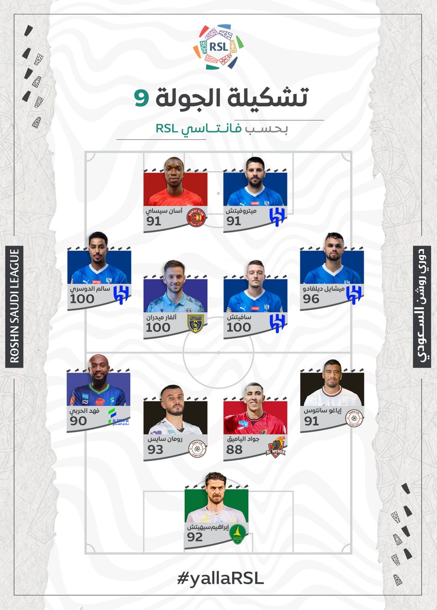 - الهجوم: ميتروفيتش (الهلال)، سيساي (ضمك)