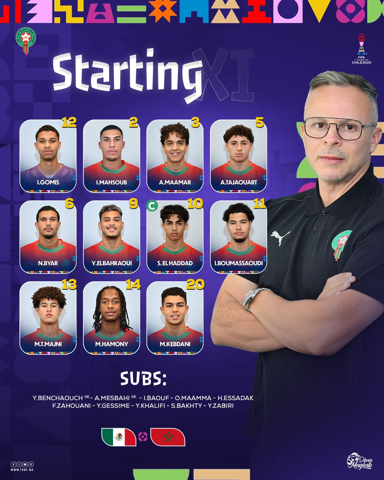 وفي مايلي تشكيلة المدرب محمد وهبي التي اختارها لمواجهة أبناء المكسيك.