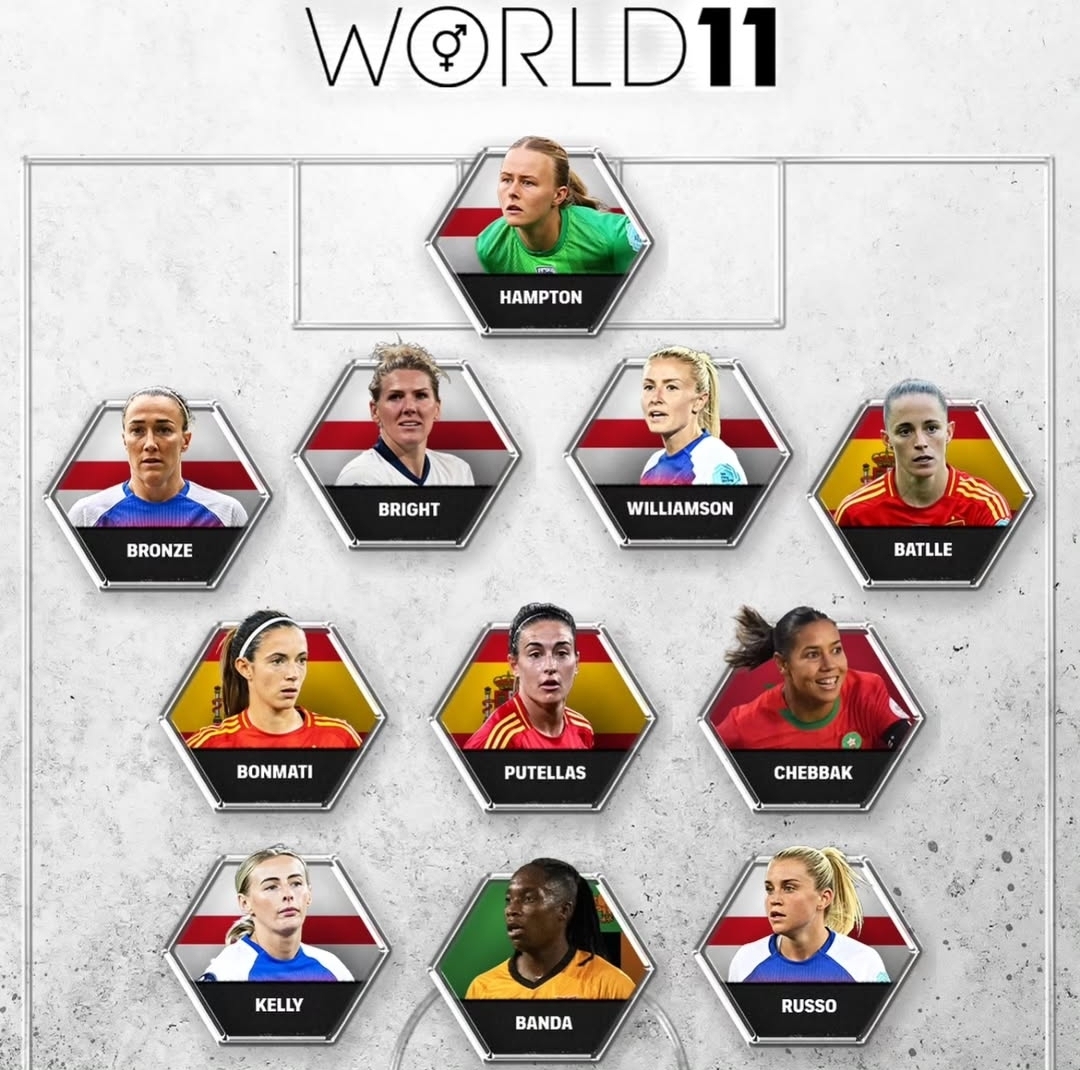 المدافعات: أونا بالا (برشلونة، إسبانيا)، ميلي برايت (تشيلسي، إنجلترا)، لوسي برونز (تشيلسي، إنجلترا)، ليا ويليامسون (آرسنال، إنجلترا)
