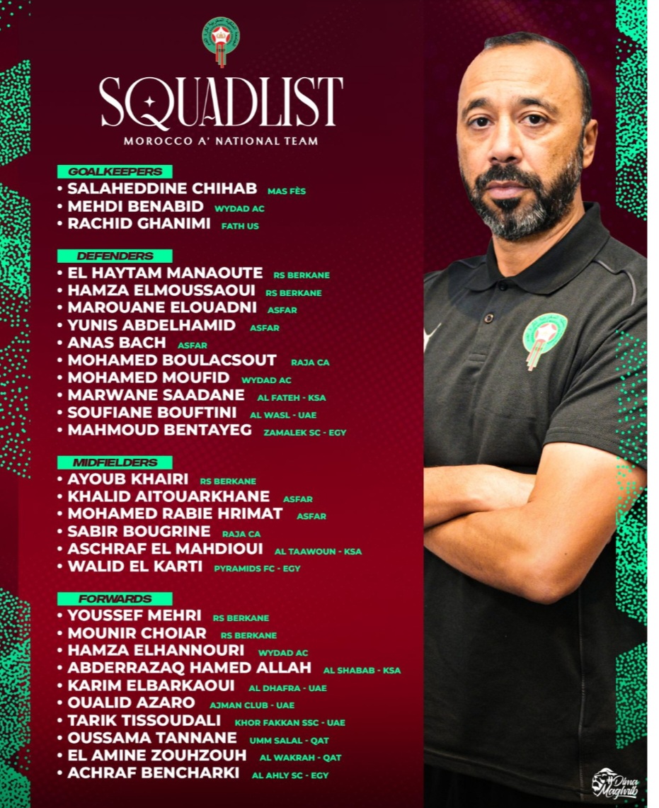 قام طارق السكتيوي، مدرب المنتخب الوطني الرديف،بتوجيه الدعوة إلى 29 لاعبًا للمشاركة في المعسكر التدريبي المغلق الذي سيدخله المنتخب بمركب محمد السادس لكرة القدم بمدينة سلا، خلال الفترة الممتدة من 10 إلى 18 نونبر 2025.