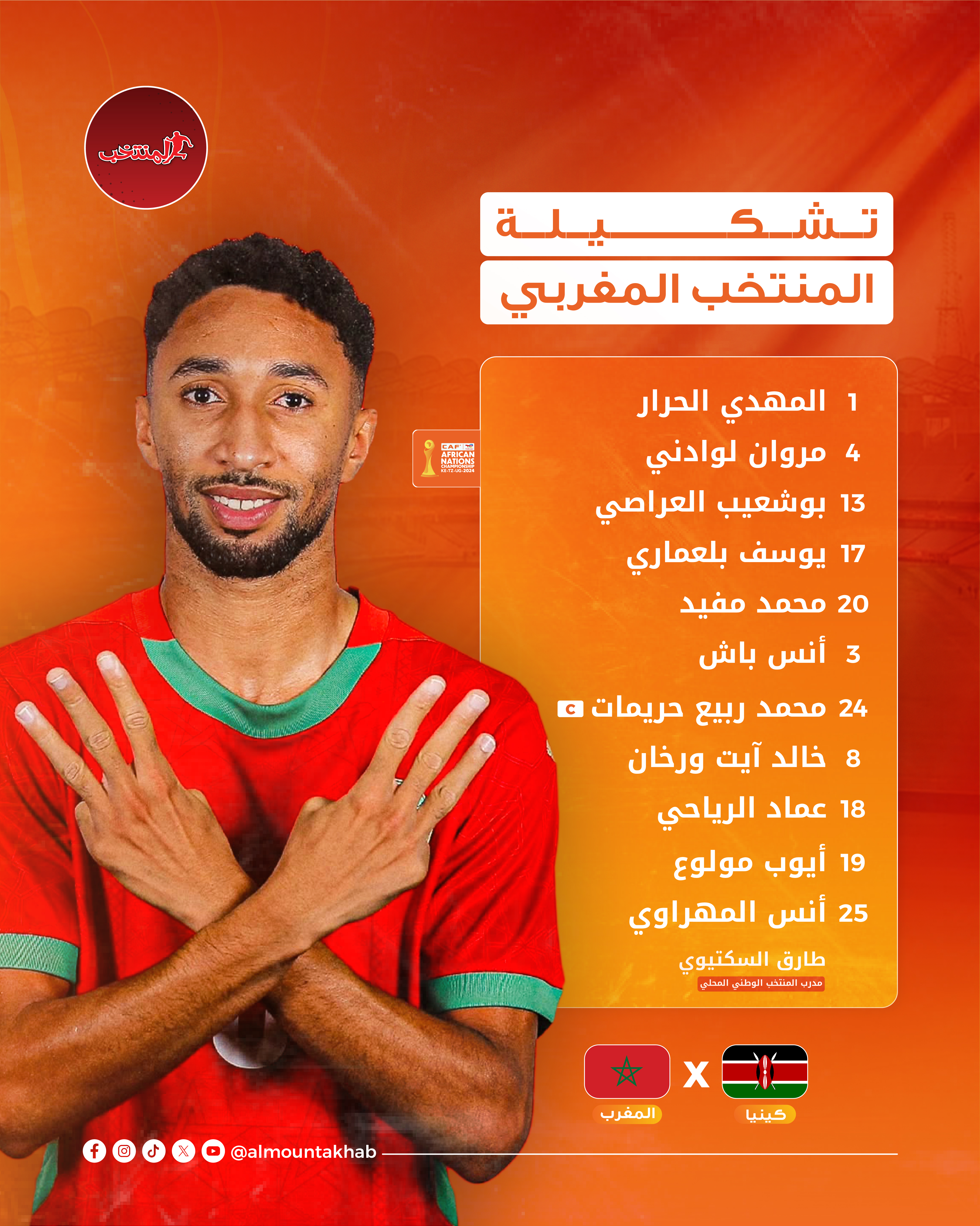 التشكيل الأساسي للمنتخب المغربي لمواجهة كينيا