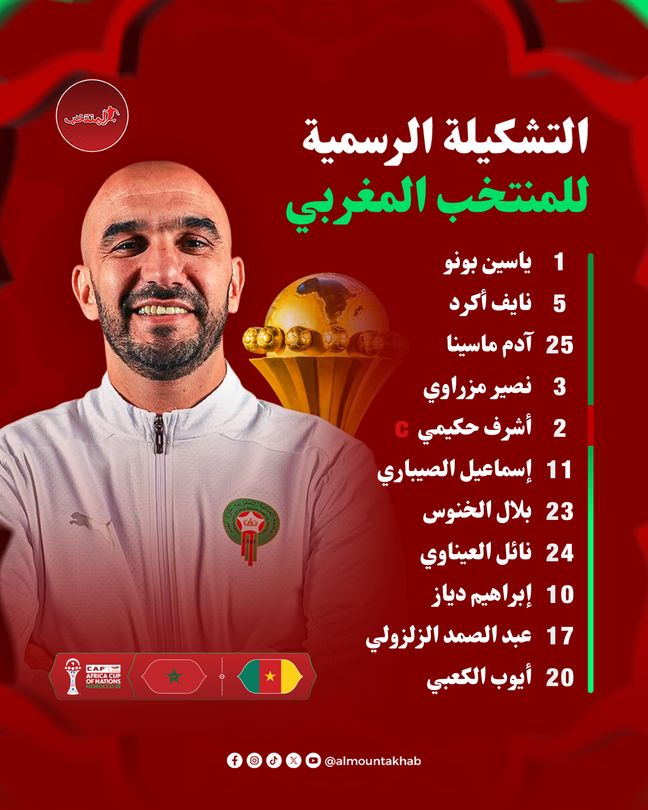 تشكيلة الفريق الوطني لمواجهة الكامرون: